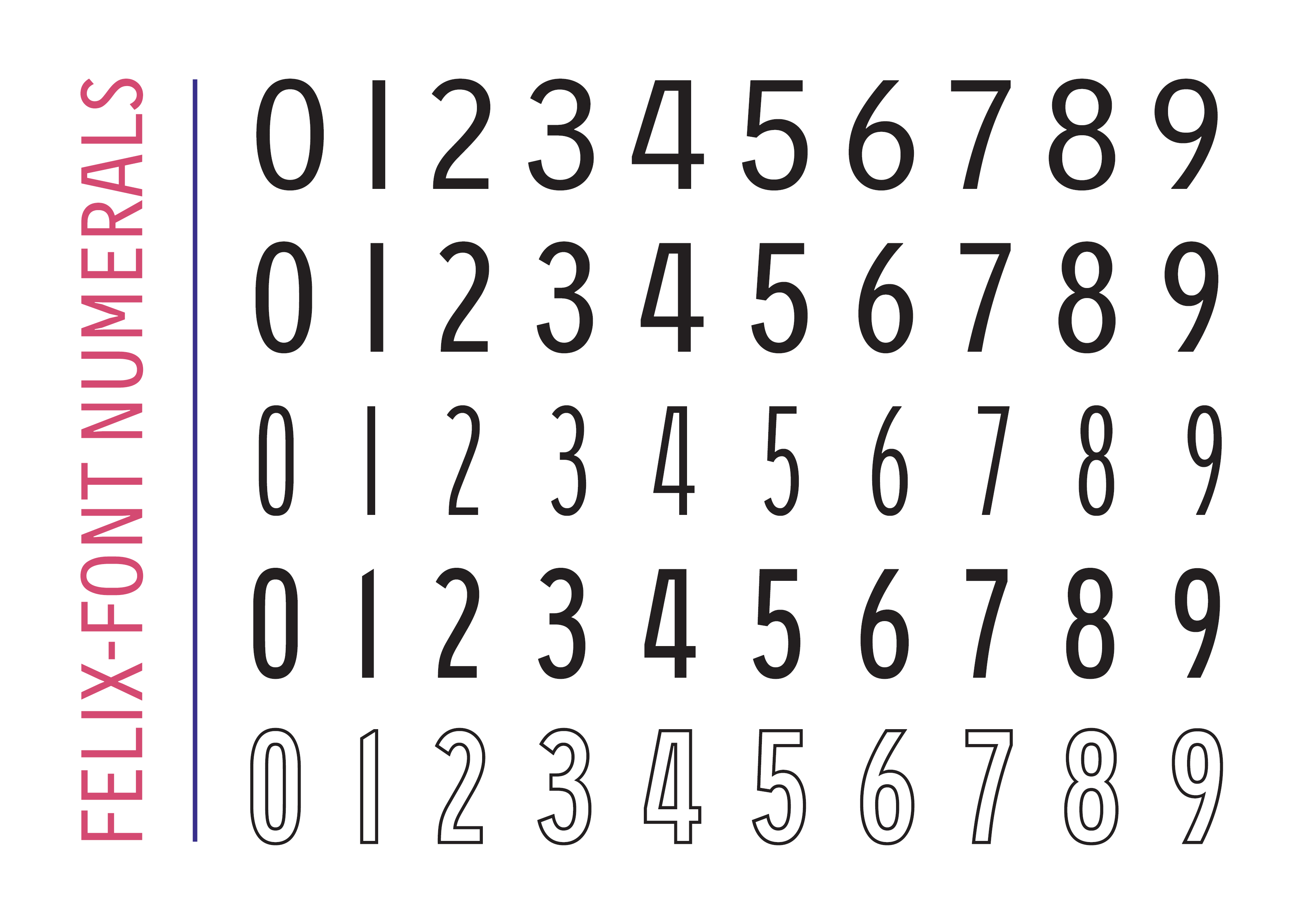 Felix-Font is a custom type family for the independent watchmaker Habring². The family was originally started as an expanded numeral set that was modeled after Habring²’s existing 12 numeral on their Felix watch. Additionally a set of filled outline numerals were created to refine the gilded applications which can be found on the Erwin and Doppel-Felix.