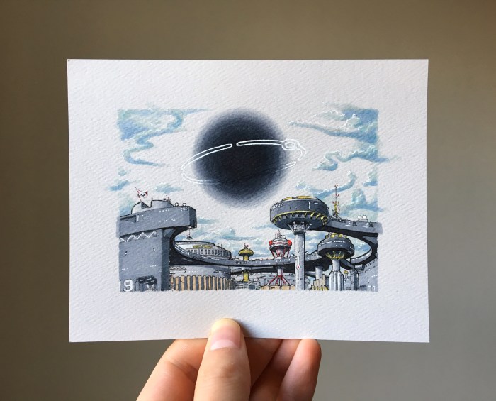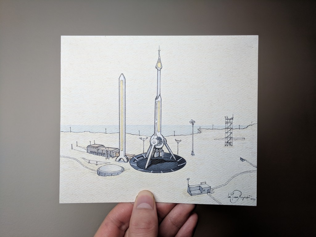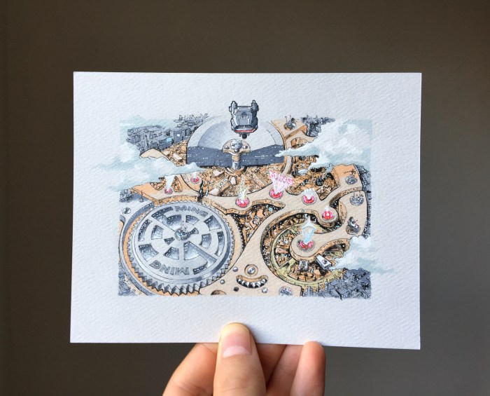 November 2019 was Blade Runner Month for One Hour Watch and I used that theme on the movement of the Ming 19.02. From this drawing sprung the idea to do a four illustration set for the Ming team. I’m a happy illustrator anytime there is the chance to include sci-fi themes, so I was over the Moon while making these drawings.