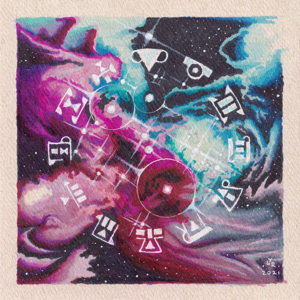 Finally a drawing made for Watches by SJX that captures a cosmic scene inspired by the Kudoke 2 Zodiac. Helping to design this watch was undoubtedly the highlight of my year and it was fitting that my final illustration of 2021 focused on this watch. SJX asked for something that featured the Zodiac and could be used as a new year’s greeting card. I hope the bright nebulous energy from this image can fuel an exciting year ahead.